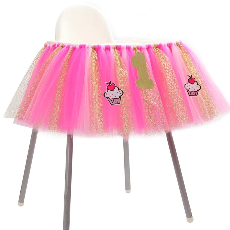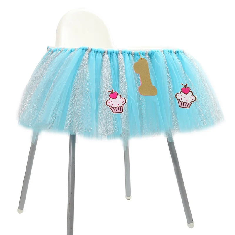 90x35cm 1 Year Old Baby Tutu Table Skirts Baby Shower Birthday Decoration For High Chair Decor Part